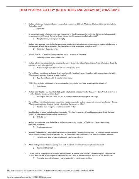 Read Online FREE HESI PHARMACOLOGY QUESTIONS Paperback